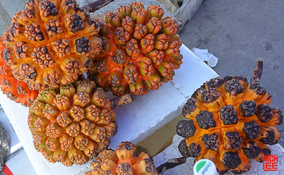 This wild pineapple is only(?) found in Southern Taishan. One is suppose to peel it and soak in salt water before eating.