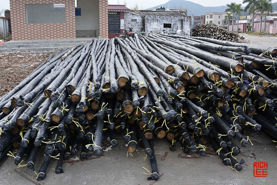 From the oyster racks these oyster poles are suspended deep in the water. The poles support nests of oysters that extract nutrients from the water.