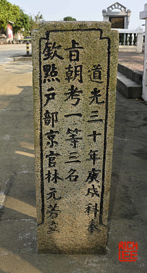 An unnamed student from Cao Ping Cun placed 3rd in the national exams during the period of Dao Guan, 1820-1850.