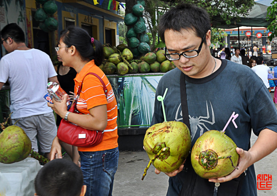 • coconut food man people woman