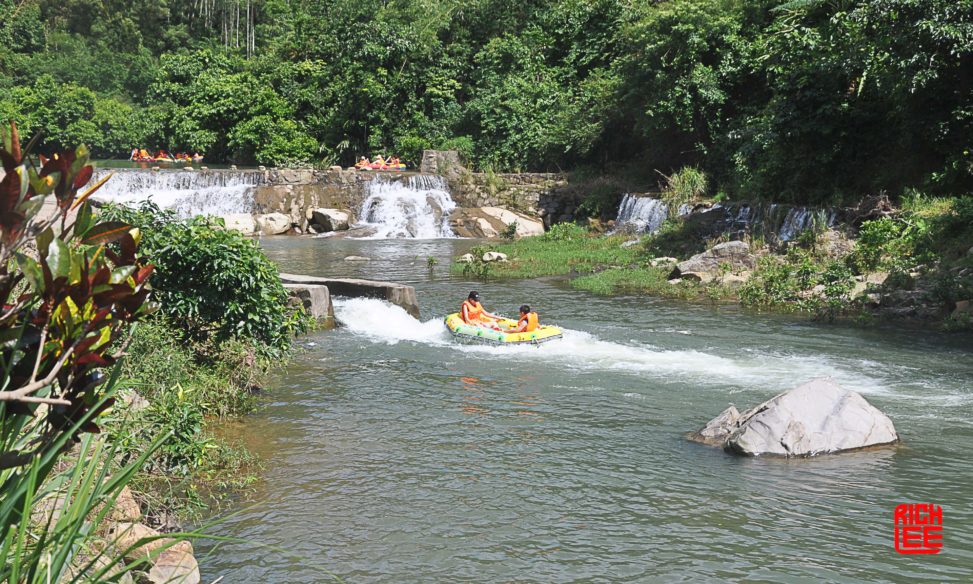 Water water rafting is not like America’s. In America, one is free to encounter every rock, every twist and turn, and, every drop. Here, in China, the water is controlled, some places have cement troughs, and, handlers at every turn; it’s like a water slide.